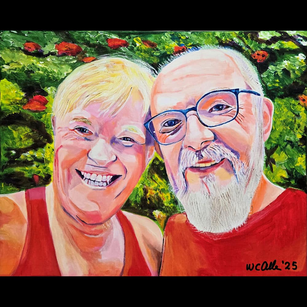Working exclusively in acrylic, he brings a sense of immediacy and energy to each canvas, inviting viewers to connect with the emotional undercurrents of his subjects. His work is a celebration of individuality, connection, and the beauty found in both the ordinary and the extraordinary.